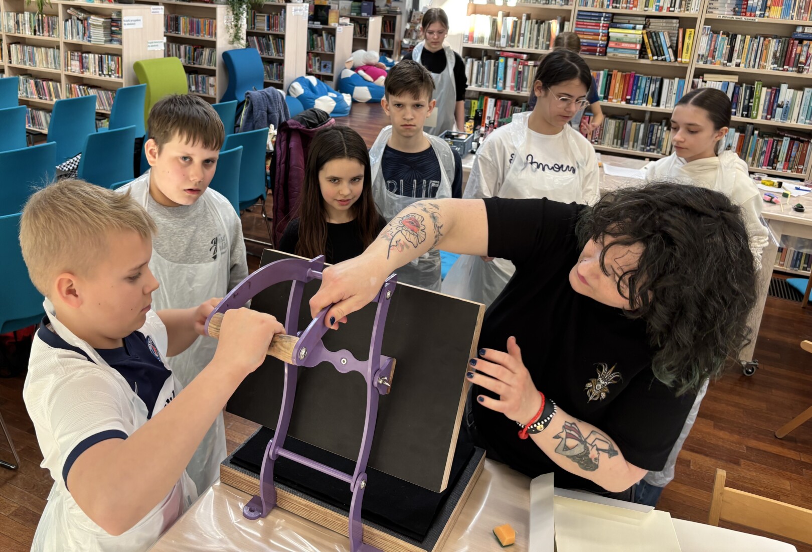 Dziś gościliśmy w bibliotece w Bninie uczniów klasy 5 oraz Panią Zuzannę Kostyk z Chce Mi się – warsztat kreatywny.