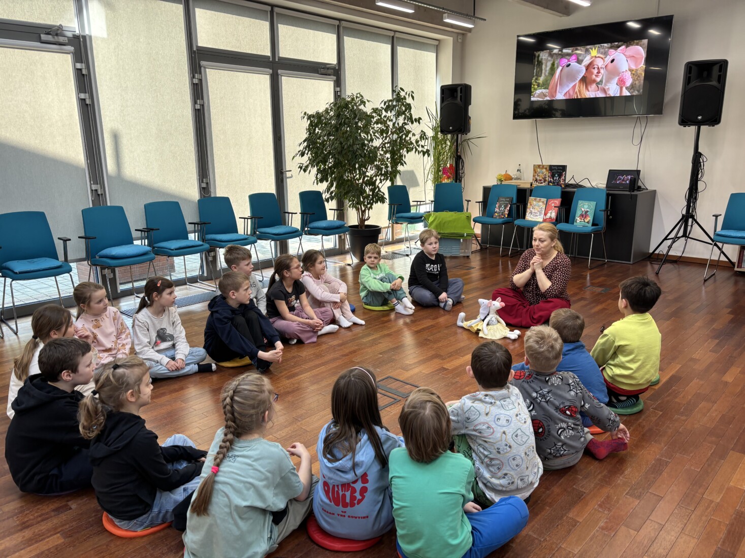 Pani Alina przeprowadziła warsztaty dla dzieci z grupy przedszkolnej oraz dla uczniów klasy 1 SP.