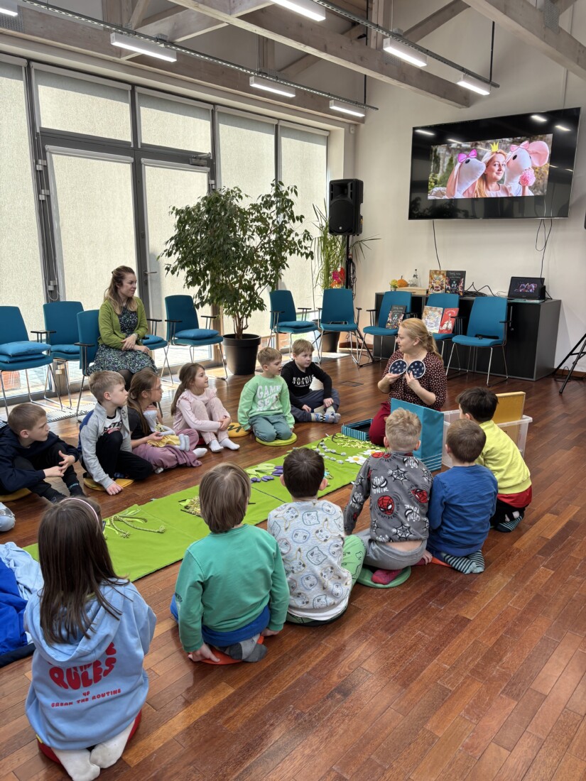 Przedszkolaki wzięły udział w zajęciach pt. “Każdy może ocalić morze”, podczas których pomagały Myszce Soniulindzie i Króliczce Matildzie w sprzątaniu morskich głębin. Dzieci miały również okazję zamienić się w groźne morskie potwory.